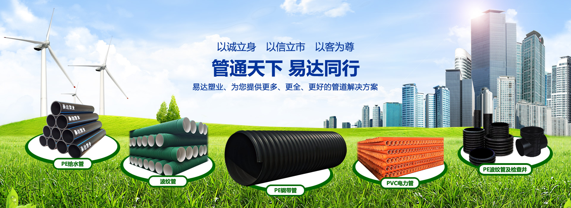 ?湖南易達(dá)塑業(yè)有限公司位于寧鄉(xiāng)經(jīng)濟(jì)技術(shù)開(kāi)發(fā)區(qū),占地100余畝,是一家集塑膠管道生產(chǎn)、銷(xiāo)售一條龍服務(wù)的高新技術(shù)企業(yè),是國(guó)內(nèi)較有影響的塑膠制品企業(yè)?! 」井a(chǎn)品主要包括PE纏繞管、HDPE硅芯管、PVC梅花管、PVC波紋管、氯化聚乙烯(PVC—C)高壓電力電纜套管、聚氯乙烯(PVC—U)給排水管材(管件)、絕緣電工套管、路燈電纜套管、埋地用通信管道、PE給水管、PE頂管、PE三色管等120多